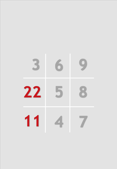 Trong Numerology, ý nghĩa căn bản của mỗi con số được dựa trên bí nghĩa gốc được Pythagoras truyền dạy cho các học trò của mình cách đây hơn 2.500 năm. Theo đó, bạn hãy áp 9 con số tự nhiên vào một biểu đồ vuông vức, mỗi cạnh bao gồm 03 con số theo thứ tự từ dưới lên trên, từ trái qua phải (xem hình minh họa). Và nhìn vào mỗi số, bạn hãy nghiệm qua các ý nghĩa của từng số như sau: